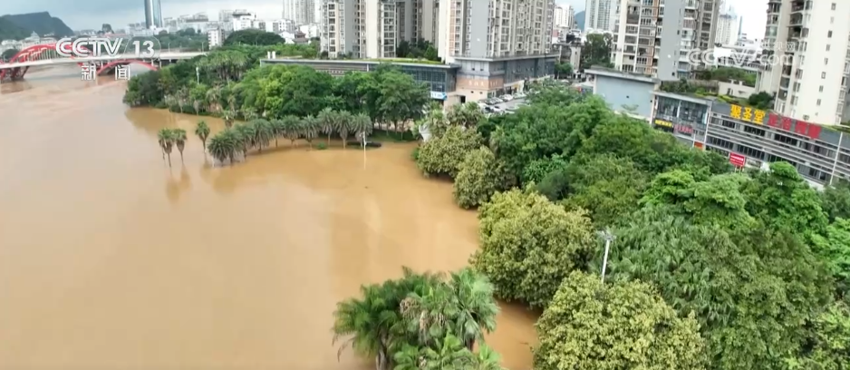 央视网消息: 6月21日下午,受强降雨及上游持续来水影响,广西柳江水位涨至82.50米的防洪警戒水位,柳州水文中心发布信息表示已形成“柳江2025年第1号洪水”。洪水导致柳州市区部分亲水平台及路段被淹。