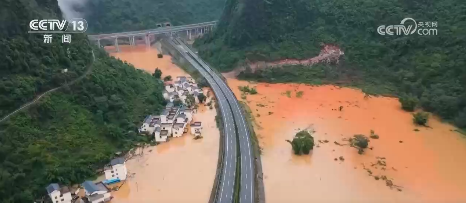 在河池市南丹县的一个社区,降雨导致积水严重,水深达5到6米,10余名武警官兵携带救援装备帮助群众转移。截至21日18时,已安全转移群众200余人。